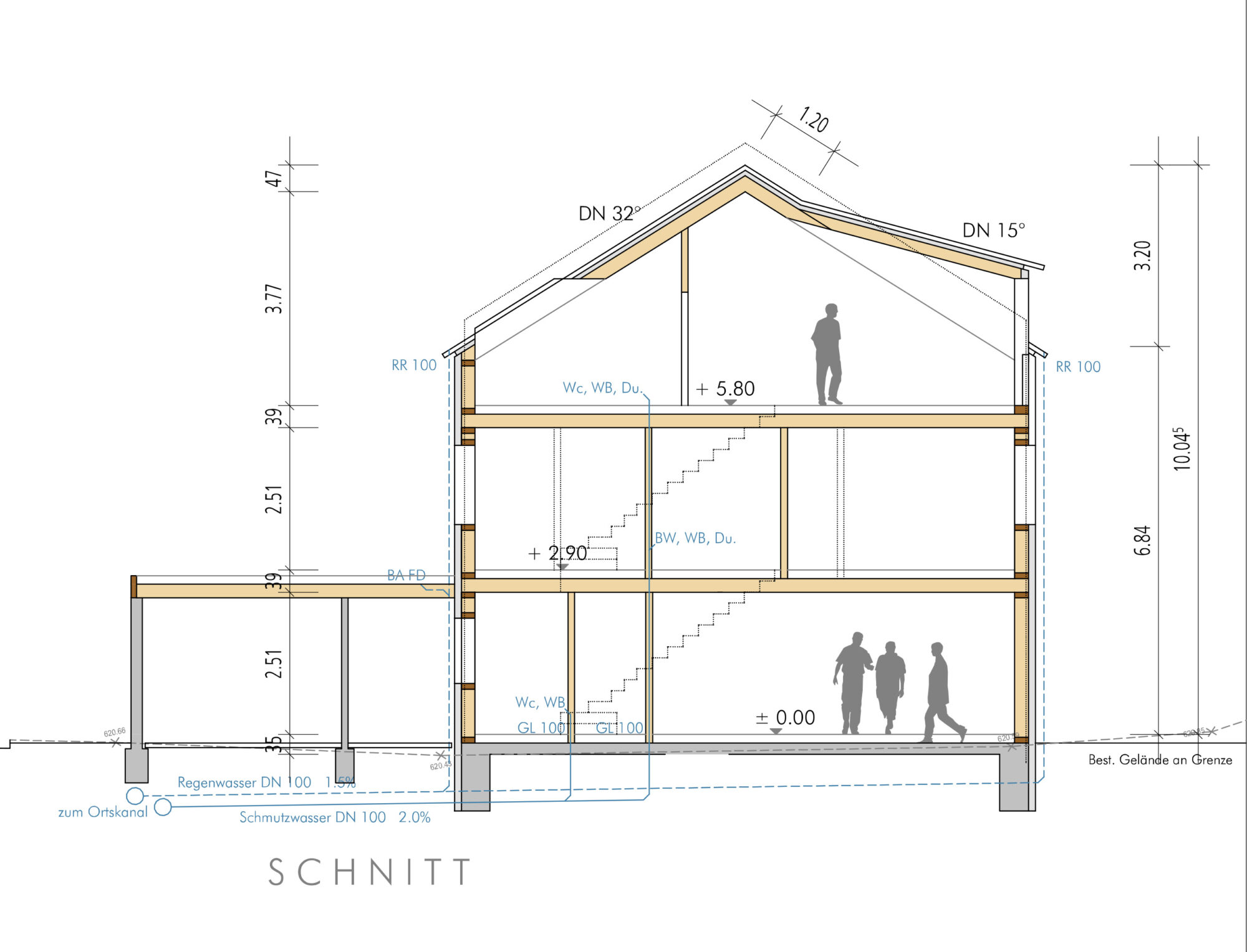 Großer Wohn-Essbereich mit offener Küche und ein Gäste WC im Erdgeschoss, lichtdurchflutet und offener Zugang ebenerdig in den Garten, im Obergeschoß das Elternschlafzimmer mit Ankleide plus zwei Kinderzimmer sowie ein Bad mit begehbarer Dusche und Badewanne. Im Dachgeschoss ein Studio-Apartment mit einem großen Zimmer, Ankleidebereich, Balkontüre mit frz. Balkon und ein weiteres Badezimmer. Zwei Stellplätze stehen auf dem Grundstück ebenso zur Verfügung. Ökologisch, nachhaltig gebaut, Kfw55-Standard, Holz-Ständerbauweise mit Holzflex gedämmt, Heizung mit Luft-Wärmepumpe (plus Photovoltaik-anlage), Fußbodenheizung oder Niedrigtemperaturheizkörper nach Wunsch, auch kombinierbar. Echtholzböden im Wohnbereich, Fliesen im Badezimmerbereich. Voraussichtlicher Baubeginn Ende 2024, Fertigstellung geschlossener Rohbau als Ausbauhausvariante oder schlüsselfertig ab Herbst/Winter 2025 möglich.